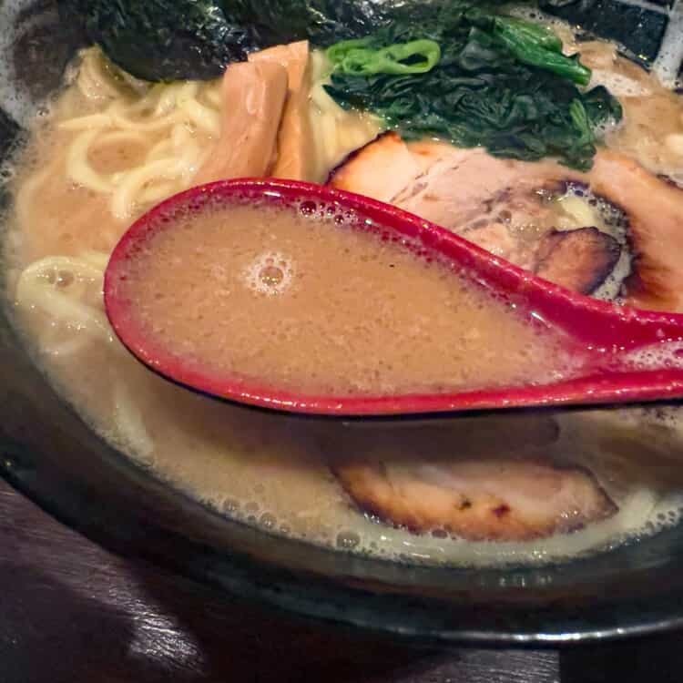 スープは他の2店では壱角家に近い色。濃厚で角の取れた丸みのある豚骨醤油スープ。