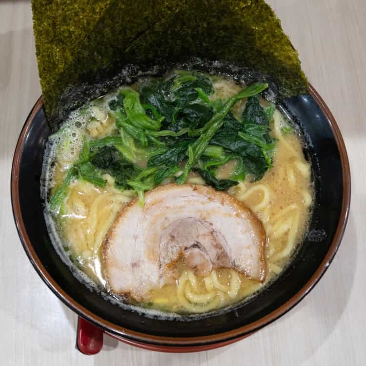 醤油と塩を選ぶことができ、並サイズで1杯700円。特筆すべきは大盛無料に加え、ライスが終日無料で食べ放題ということ。3店で唯一「満腹保証」をしているのが特徴だ。トッピングはほうれん草、チャーシュー、焼き海苔3枚。過不足なく、家系で最もスタンダードな組み合わせである。